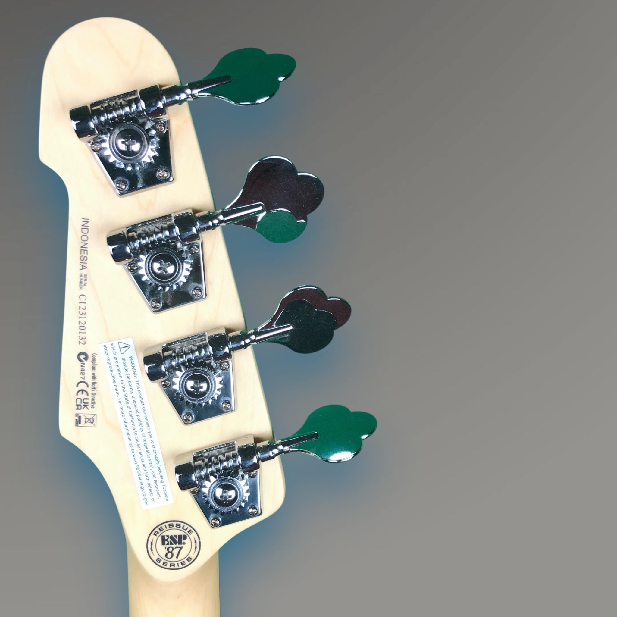 It’s finished in Metallic Purple, a color that turns heads under stage lights while keeping a refined edge up close. The electronics are passive, keeping the tone natural and responsive, while the Gotoh 201B-4 bridge and LTD Vintage tuners keep tuning rock-solid through long sets.