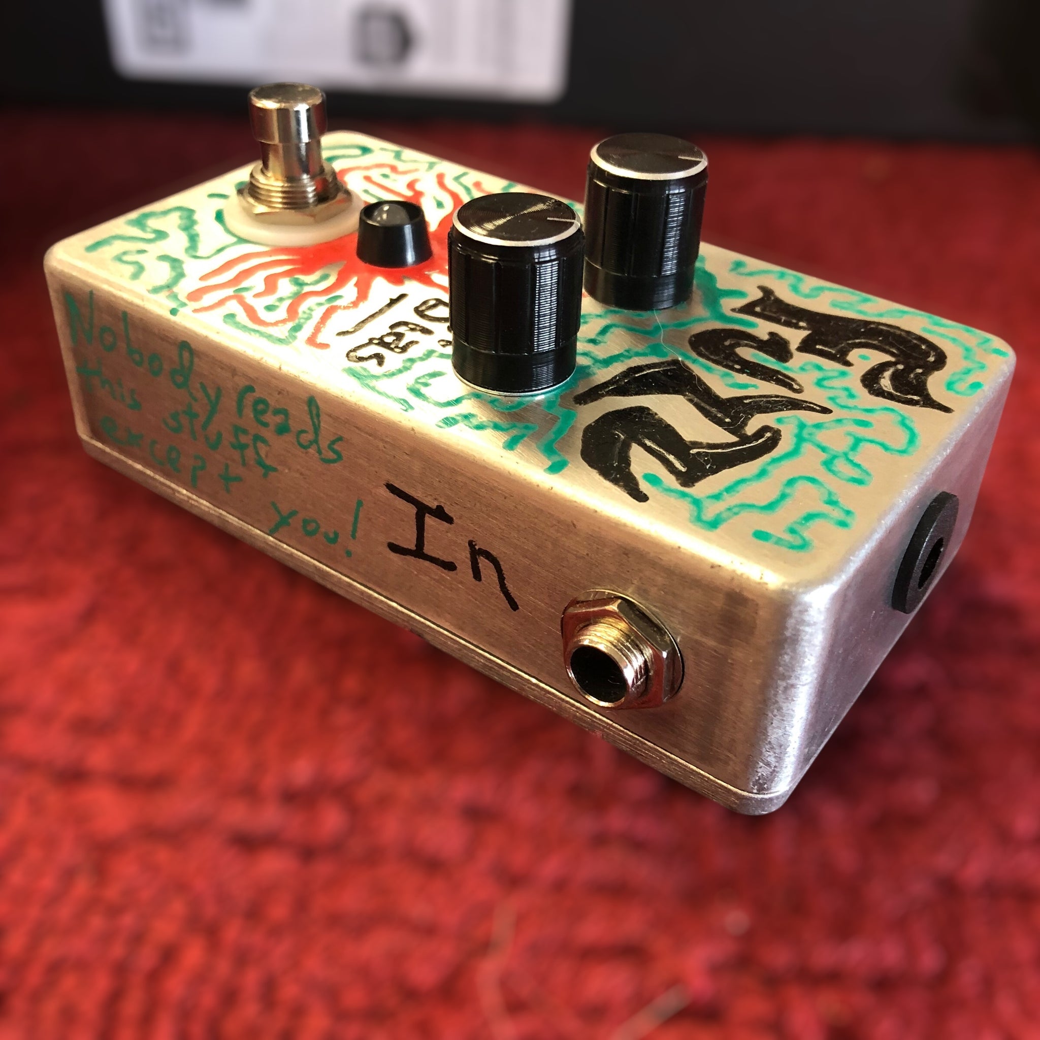 Hand-wired in our small shop in rural Indiana, this fuzz isn’t about endless tweaking — it’s about instant access to four carefully tuned voices of dirt. With just a volume knob and a four-position rotary switch, you’ve got four distinct characters of fuzz at your command, all with a low noise floor and responsive dynamics.